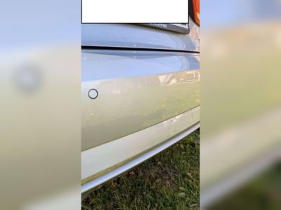Beschädigte Heckschürze nach Auffahrunfall im Stand. Die klappbare Anhängerkupplung lässt sich ausklappen. Ob sie durch den Unfall anderweitig beschädigt wurde, kann ich nicht sagen.