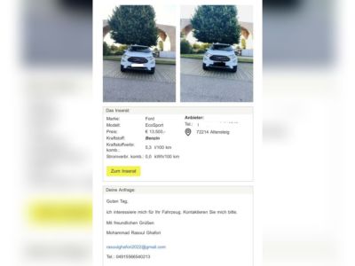 Den Händlern steht ein ausführliches Inserat zur Verfügung. Darin enthalten sind neben