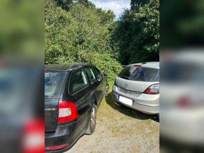 Starke Gebrauchsspuren Mkl mal an mal aus Reifen müssen neu sowie Scheibe und ein Scheibenwischer Auto steht auf alu Felgen und hat ein Sportauspuff